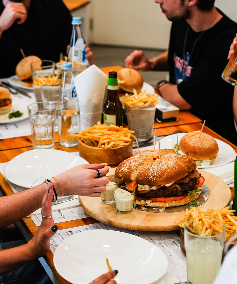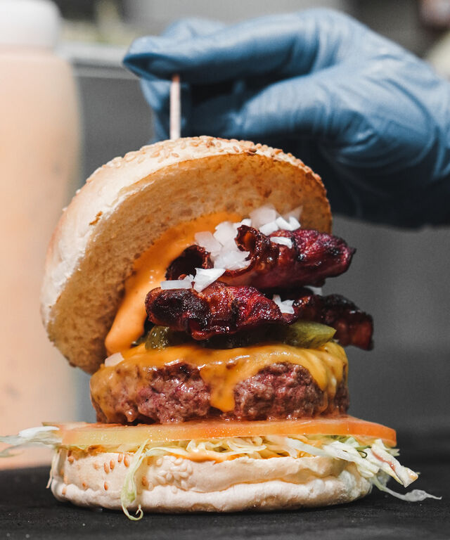 Experimente os nossos hambúrgueres artesanais feitos à mão com ingredientes frescos cuidadosamente selecionados. Escolha entre uma variedade de opções no nosso menu e desfrute de sabores autênticos e deliciosos.