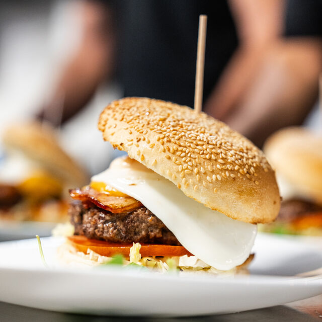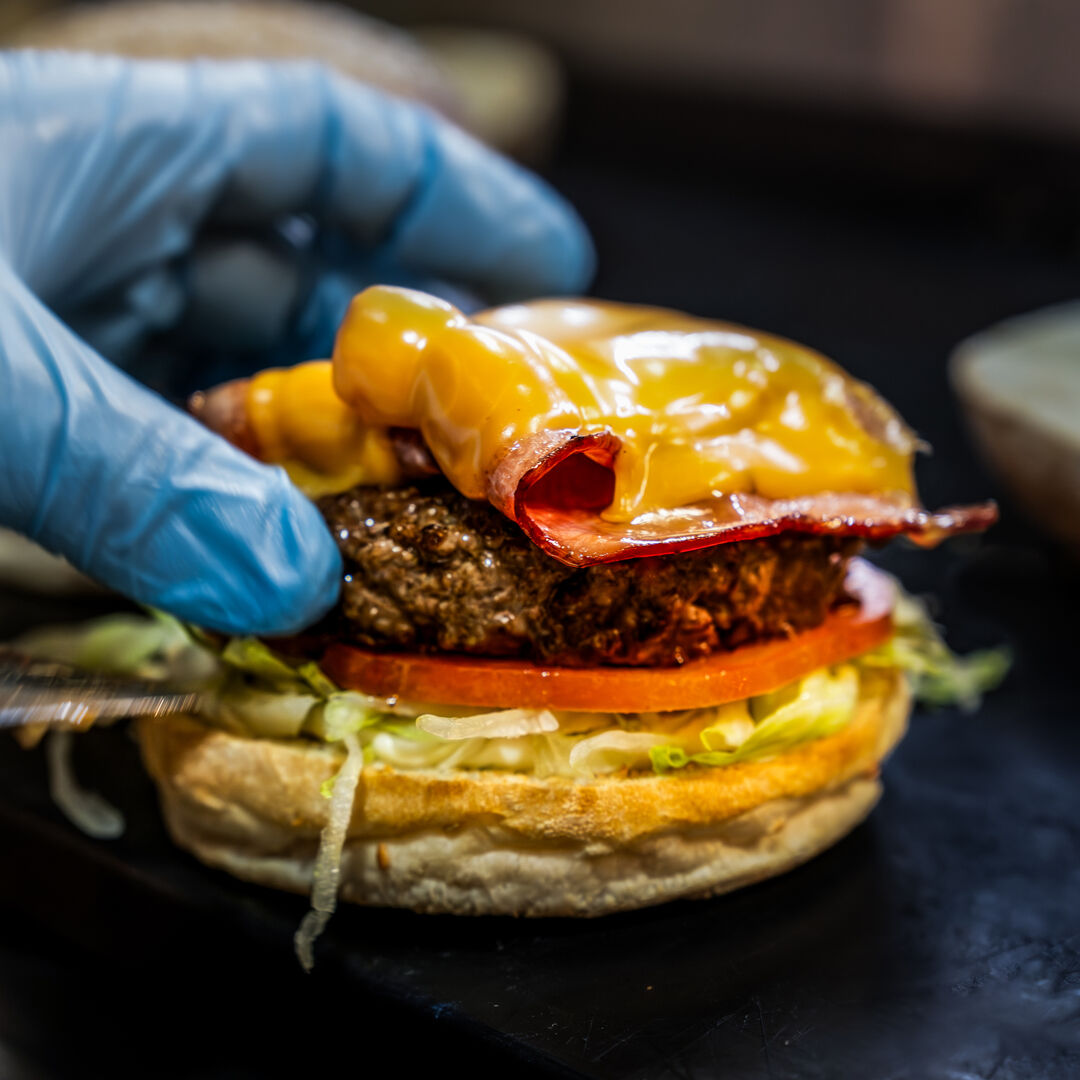 A carne usada nos nossos hambúrgueres é triturada e preparada diariamente pela nossa cozinha. Nós acreditamos que é importante oferecer aos nossos clientes hambúrgueres frescos e deliciosos.